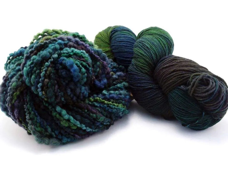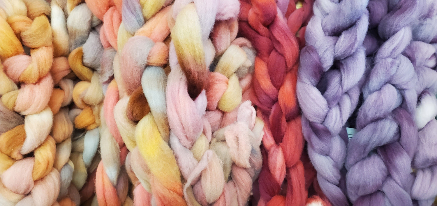 Yarns and fiber produced and/or dyed by local companies, ranchers and artists.
